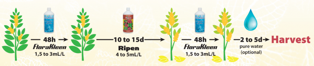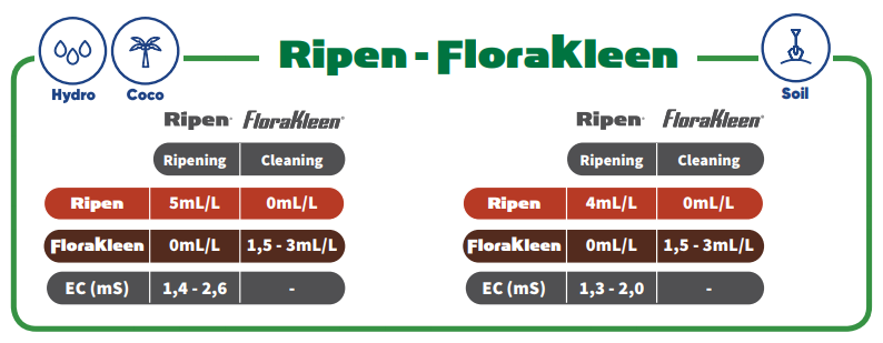 Ripen – это «усиливающий раствор» (“forcing solution“) который поможет ускорить и улучшить цветение, а также используется и конце каждого цикла цветения/плодоношения однолетних растений для улучшения вкуса и увеличения урожая.